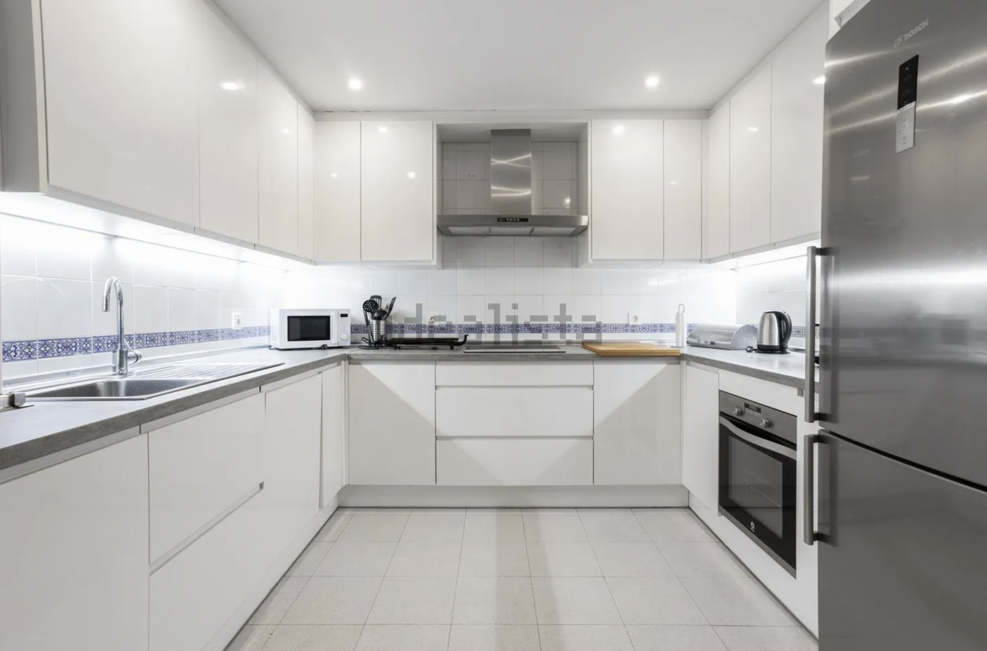 La cocina totalmente equipada incluye una zona de lavandería separada con una pequeña habitación adicional que se puede utilizar como un espacio de utilidad, sala de planchado, o incluso un dormitorio adicional si es necesario.