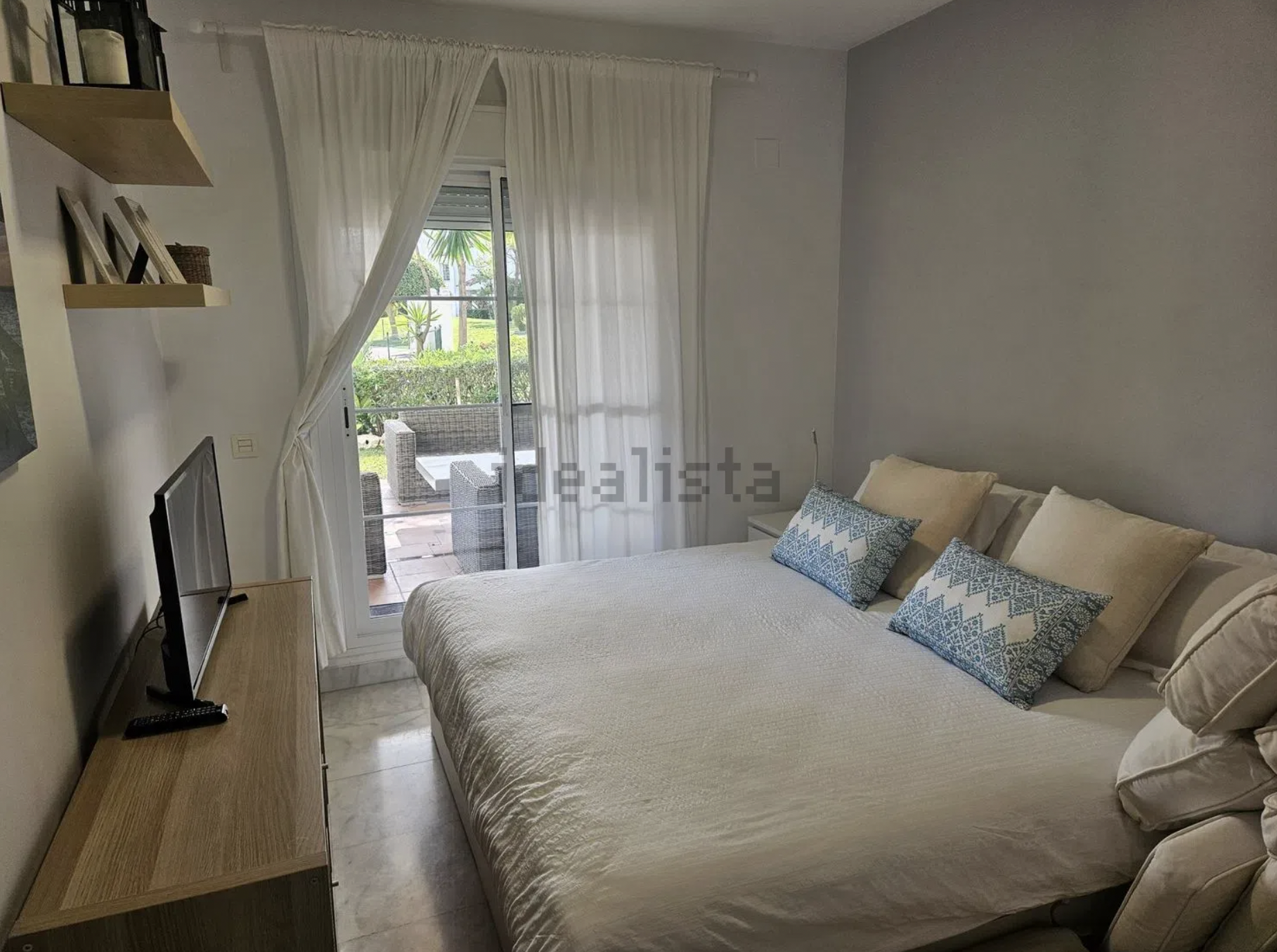 La propiedad incluye tres dormitorios bien tamaño. El dormitorio principal cuenta con un baño en suite, mientras que el segundo dormitorio tiene acceso directo a la terraza principal. El tercer dormitorio y un baño adicional son igualmente bien designados. Un aseo de invitados añade más comodidad.