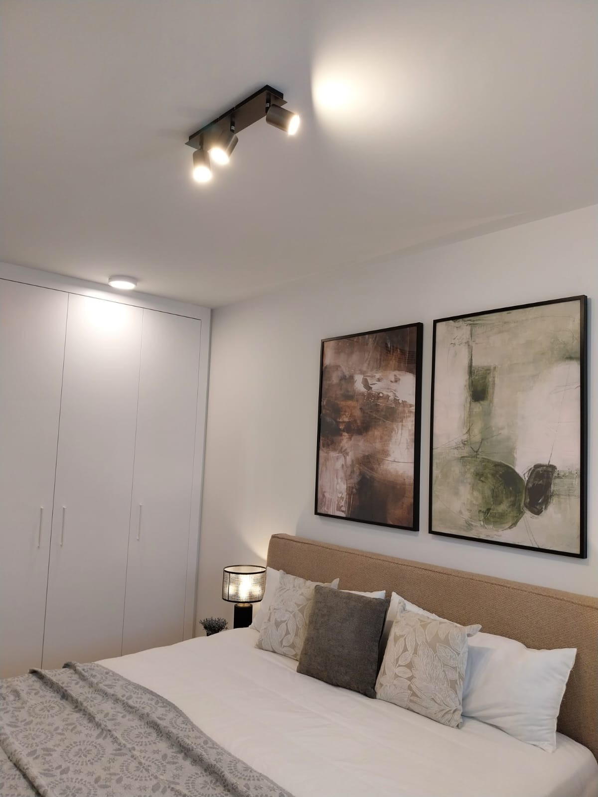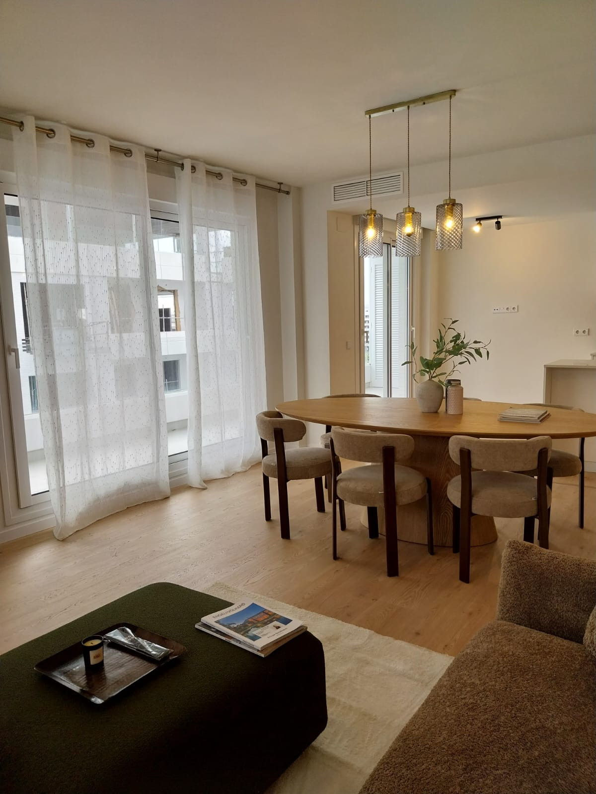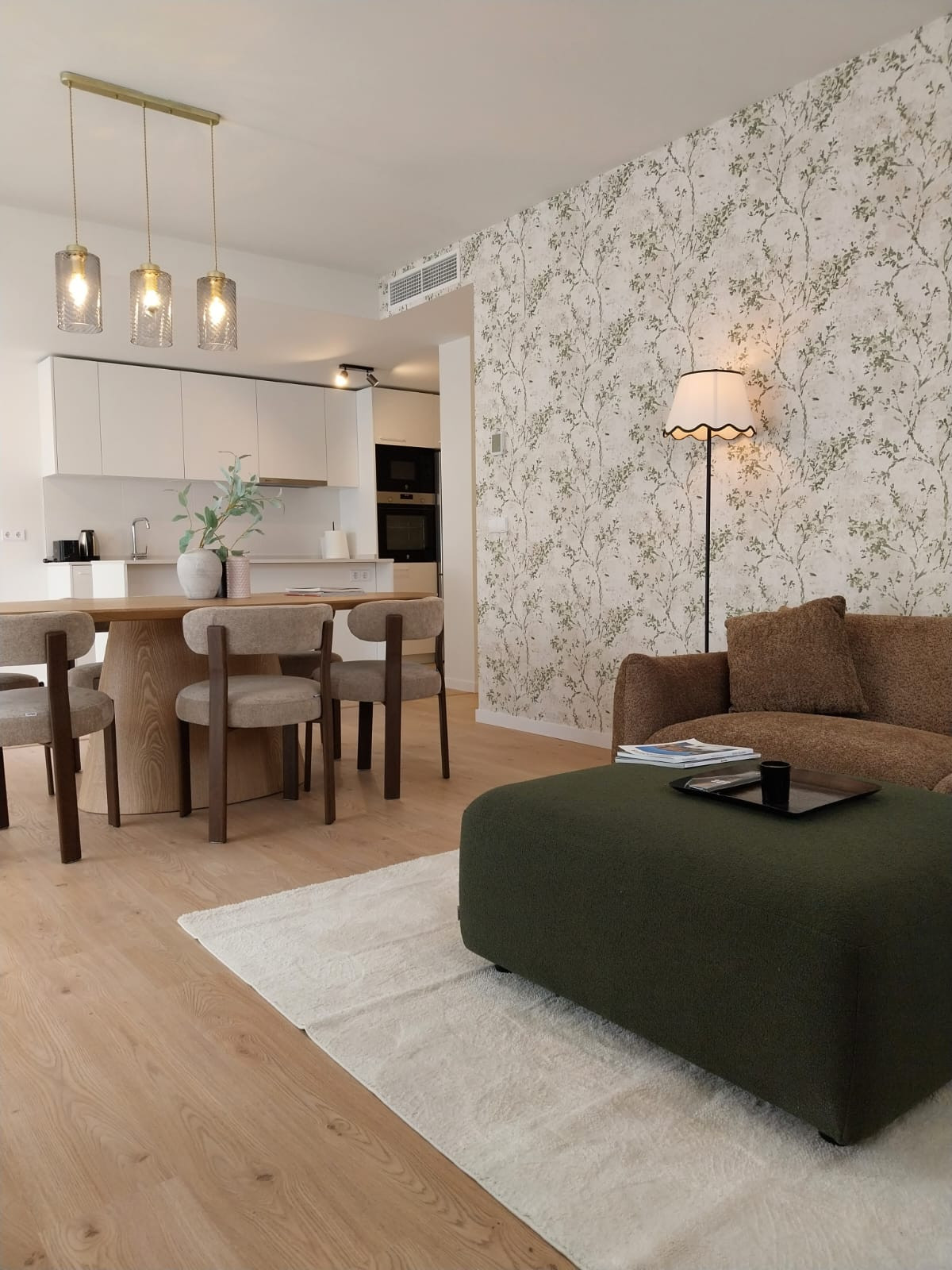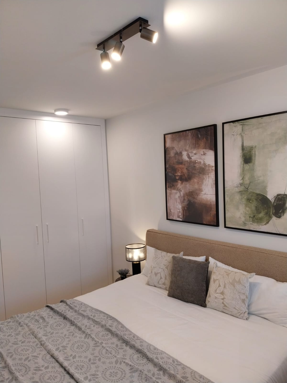 Situado en la cuarta planta con acceso al ascensor, la propiedad ofrece interiores luminosos, aire acondicionado completo y muebles elegantes de alta calidad, creando un ambiente de vida cómodo y contemporáneo. El apartamento está totalmente amueblado y cuenta con persianas de seguridad eléctrica, junto con una plaza de aparcamiento subterráneo privada y un gran trastero.