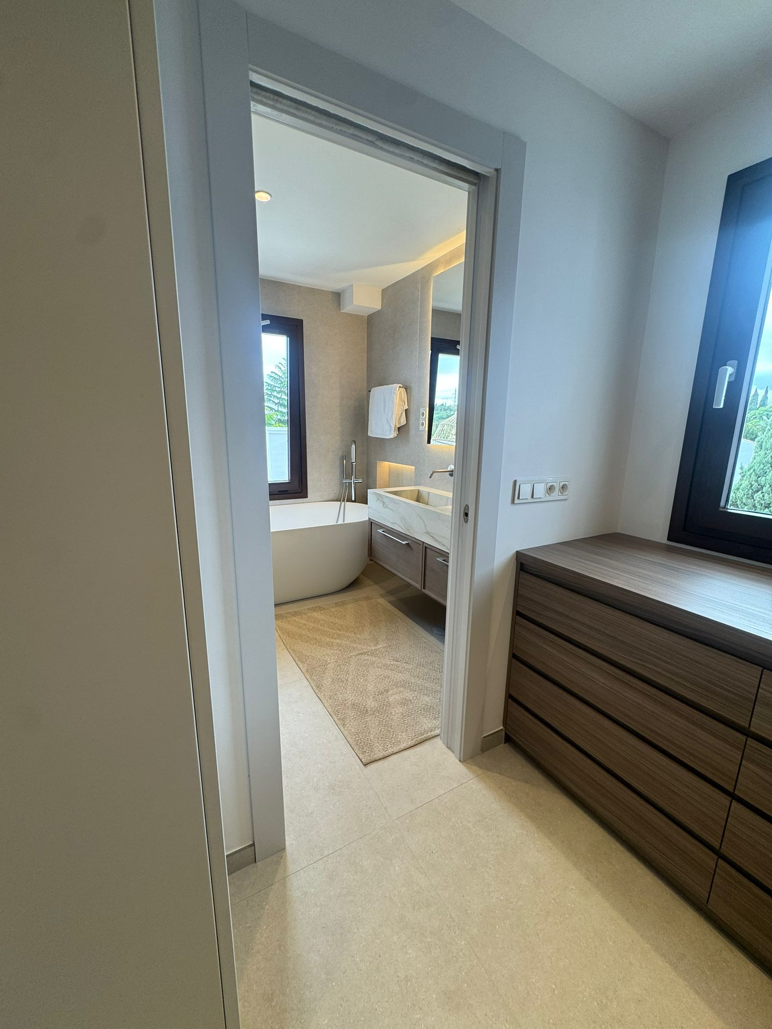 En el interior, cada detalle refleja la artesanía moderna y la calidad superior. La vivienda cuenta con una lujosa renovación a medida con carpintería personalizada, electrodomésticos Bosch, calefacción por suelo radiante en todos los baños, paneles solares para agua caliente, persianas eléctricas y un sistema de climatización Airzone de última generación en toda la vivienda, lo que garantiza el confort y la eficiencia durante todo el año.En el exterior, un jardín privado de 150 m² ofrece un espacio sereno para relajarse, con preinstalaciones listas para un jacuzzi, lo que lo hace ideal para relajarse o divertirse bajo el sol mediterráneo.