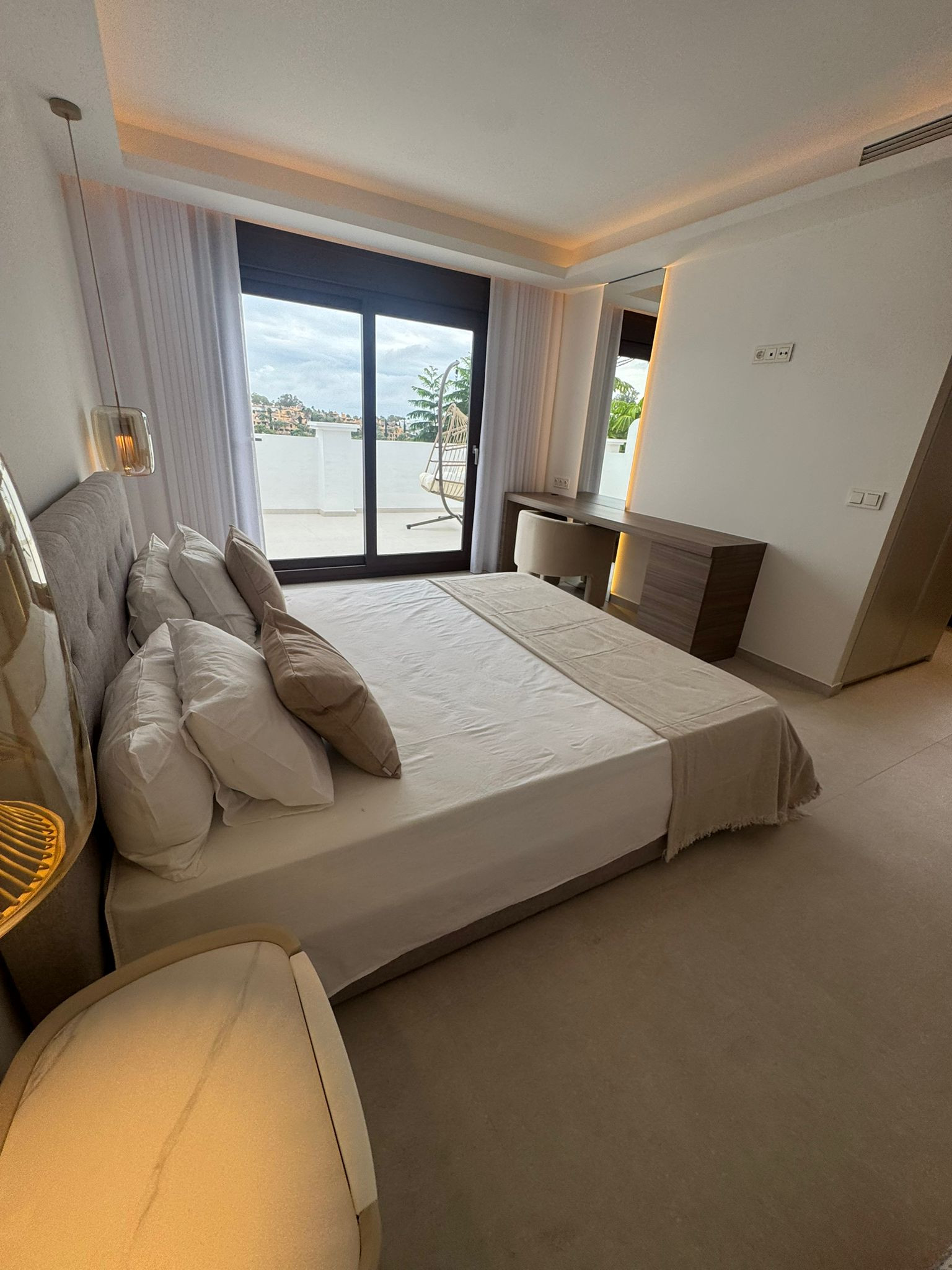 Bienvenido a la casa de sus sueños en la prestigiosa zona de El Campanario. Esta residencia, bellamente renovada, ofrece cuatro amplios dormitorios y cuatro modernos cuartos de baño, combinando a la perfección elegancia, comodidad y funcionalidad en una de las comunidades cerradas más deseadas de Marbella.