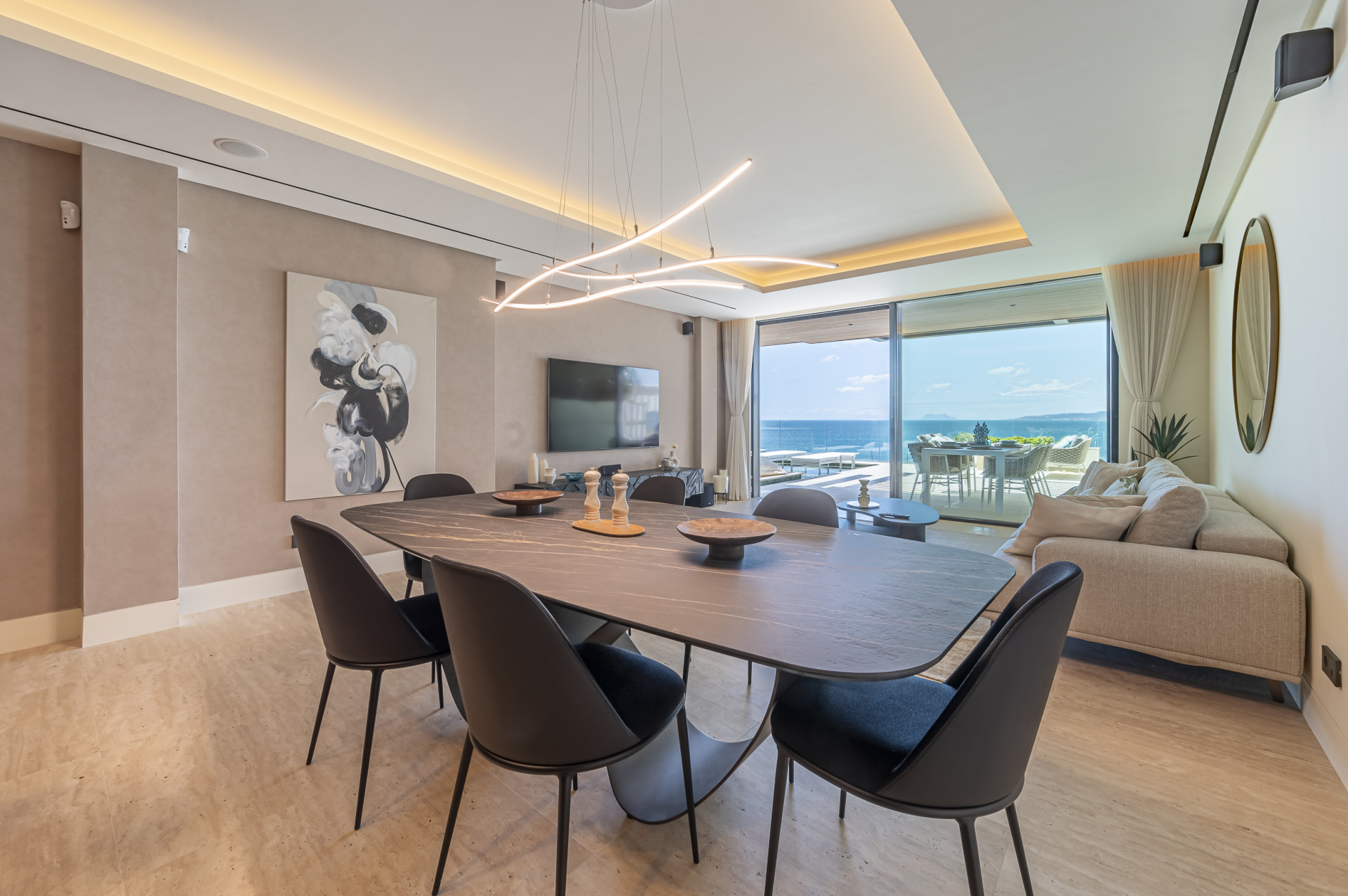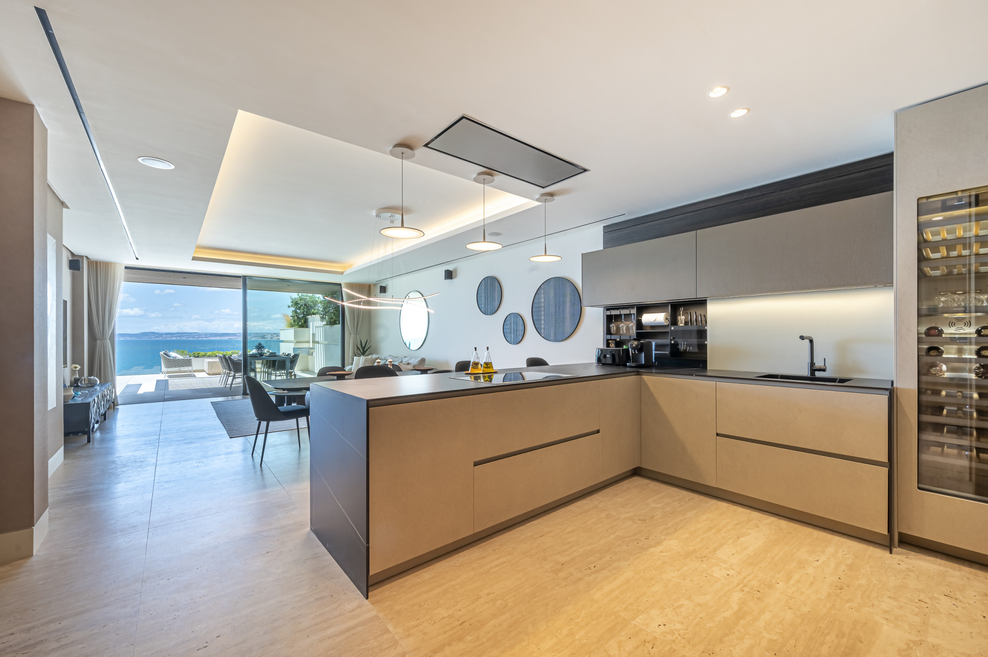 Each south-facing apartment has been crafted to maximise natural light and uninterrupted bay and sea views. Large terraces flow seamlessly from generous interior spaces, creating an effortless connection between indoor comfort and Mediterranean outdoor living. Advanced home-domotics provide intuitive control over lighting, climate, and security, while high-end materials and precision finishes ensure a distinctly refined atmosphere throughout.
