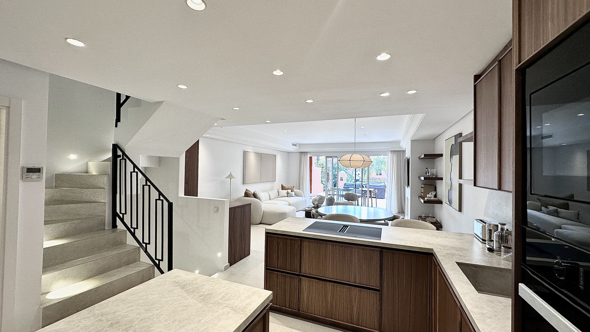 Designed for effortless indoor-outdoor living, the home features expansive terraces and a private garden, creating an ideal setting for both relaxation and entertaining. Whether enjoying sun-filled afternoons or elegant evening gatherings, the outdoor spaces make the most of Marbella’s year-round Mediterranean climate, with beautiful sea views adding an extra layer of exclusivity.