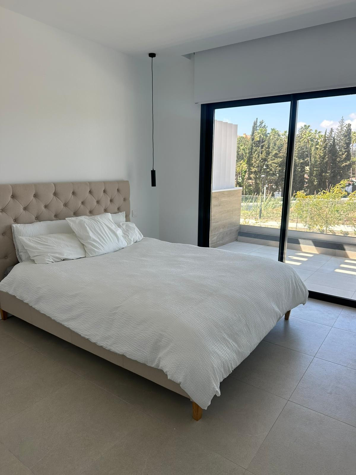 All three bedrooms are well-proportioned, with the master suite offering an elegant en-suite bathroom and direct outdoor access. The additional bedrooms and bathrooms are equally refined, making the apartment perfect for families or guests.