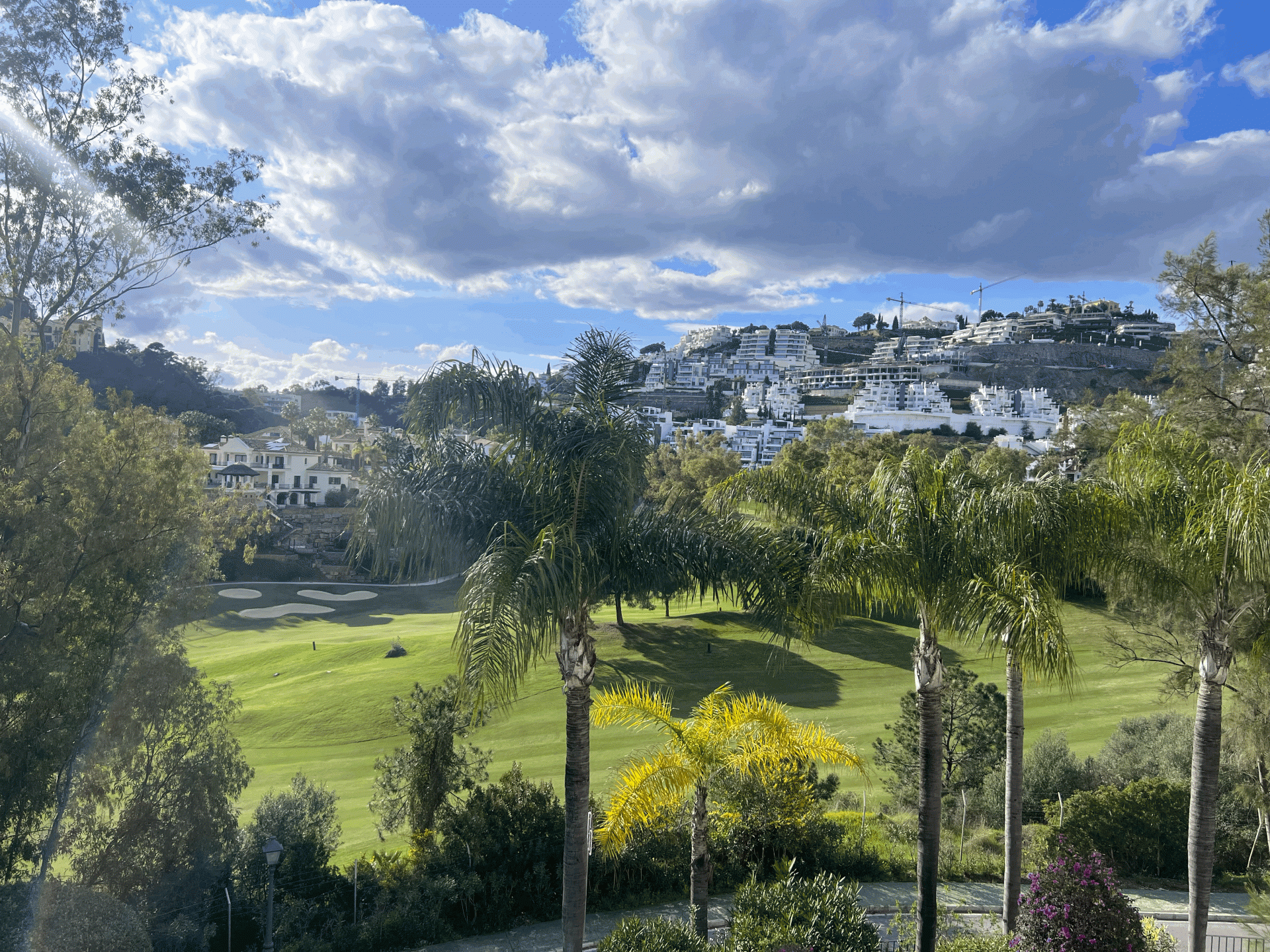 The property is distributed over three levels and offers 3 spacious bedrooms and 3 bathrooms, providing both comfort and privacy. The main living area opens onto a private garden with open views over the golf course, perfect for enjoying outdoor living all year round.
