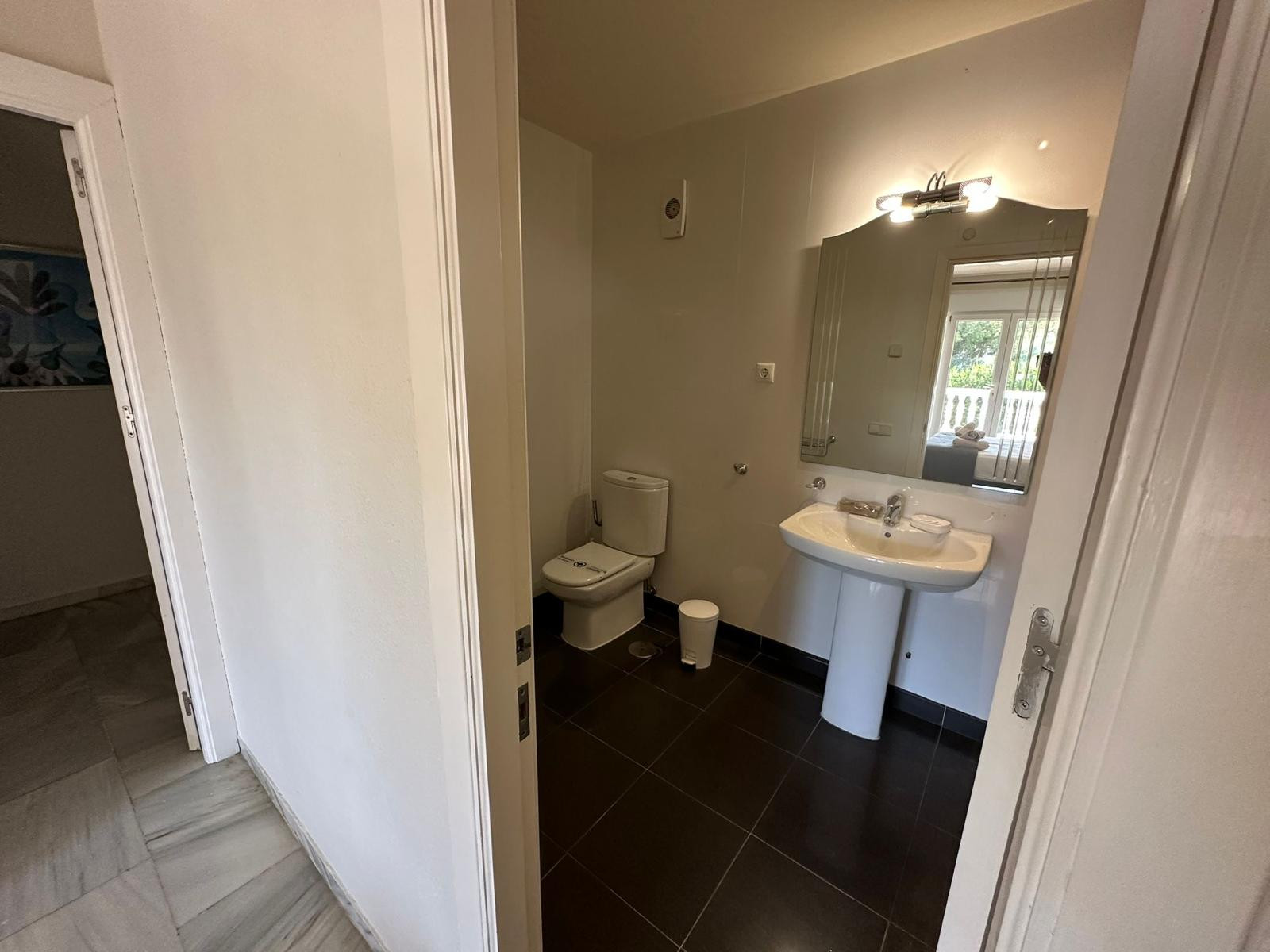 Outdoors, a private swimming pool is surrounded by landscaped gardens, creating a tranquil oasis to enjoy Marbella’s year-round sunshine. The communal garage provides secure parking, while the gated community with surveillance cameras ensures peace of mind.