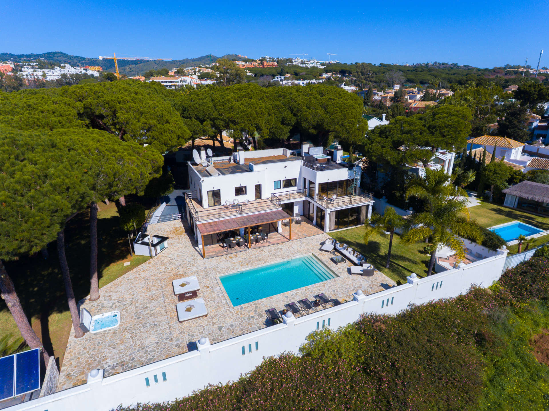 Positioned within a peaceful residential setting yet close to the vibrant atmosphere of Cabopino, the villa enjoys direct access to nature while remaining within easy reach of beaches, marinas, golf courses, and fine dining. This balance of seclusion and convenience makes it an exceptional retreat for both full-time living and luxurious escapes.