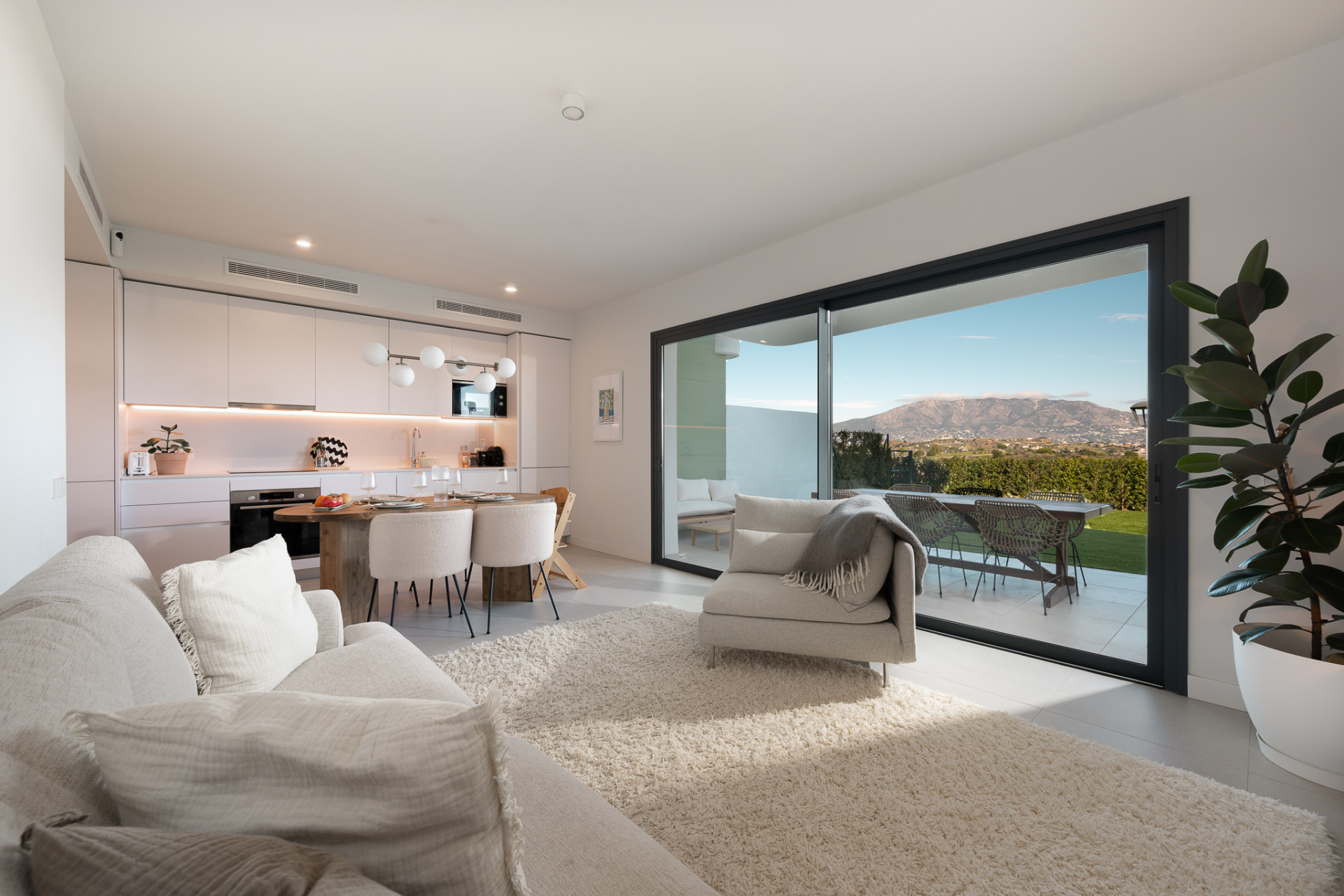 From the property, panoramic views stretch across the lush Calanova Golf course, the sparkling Mediterranean Sea, and the picturesque whitewashed village of Mijas Pueblo. Every detail has been crafted to frame these exceptional surroundings while maintaining a sense of elegance and ease.