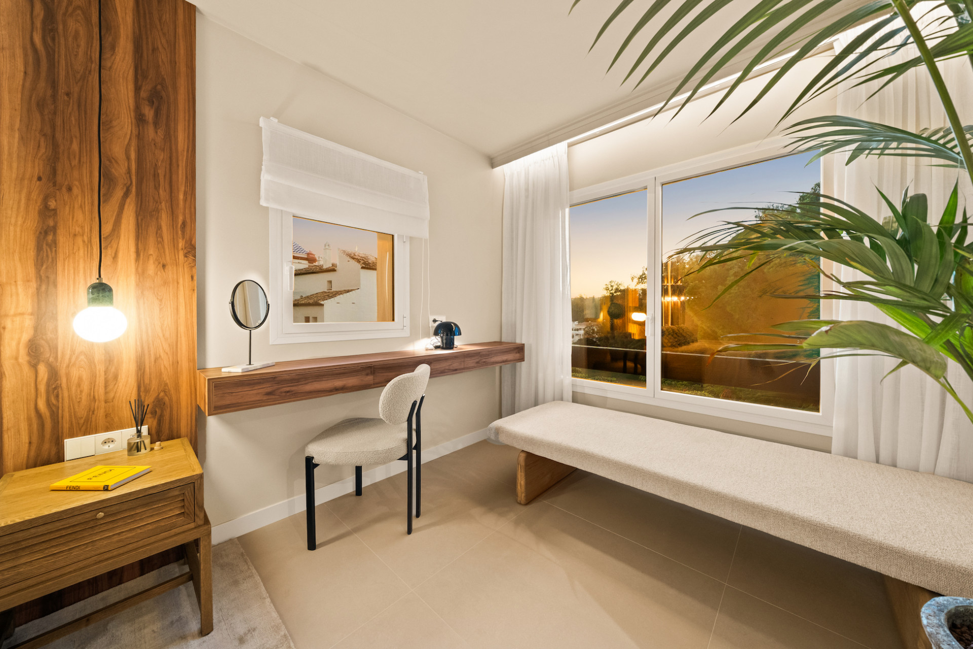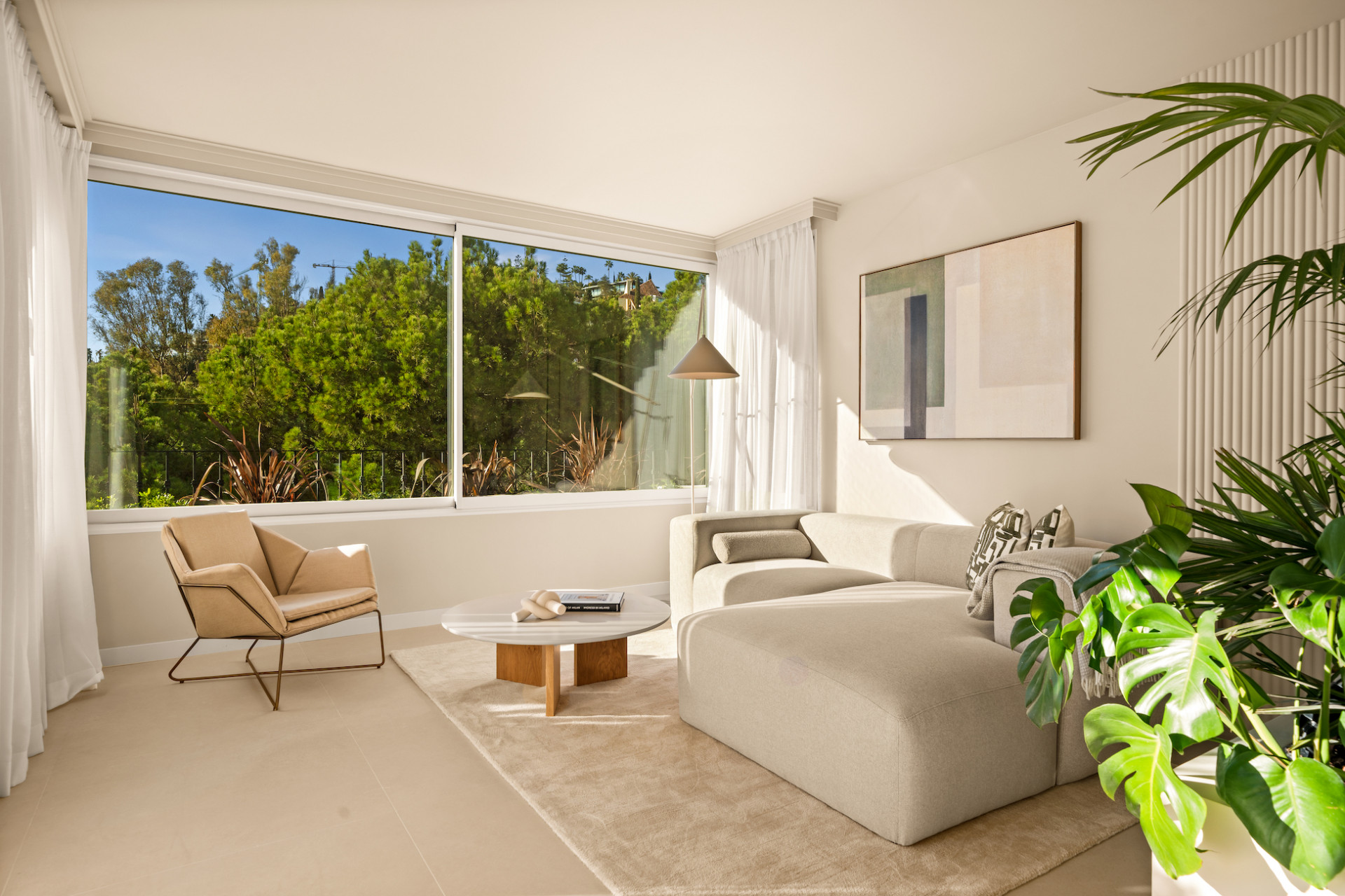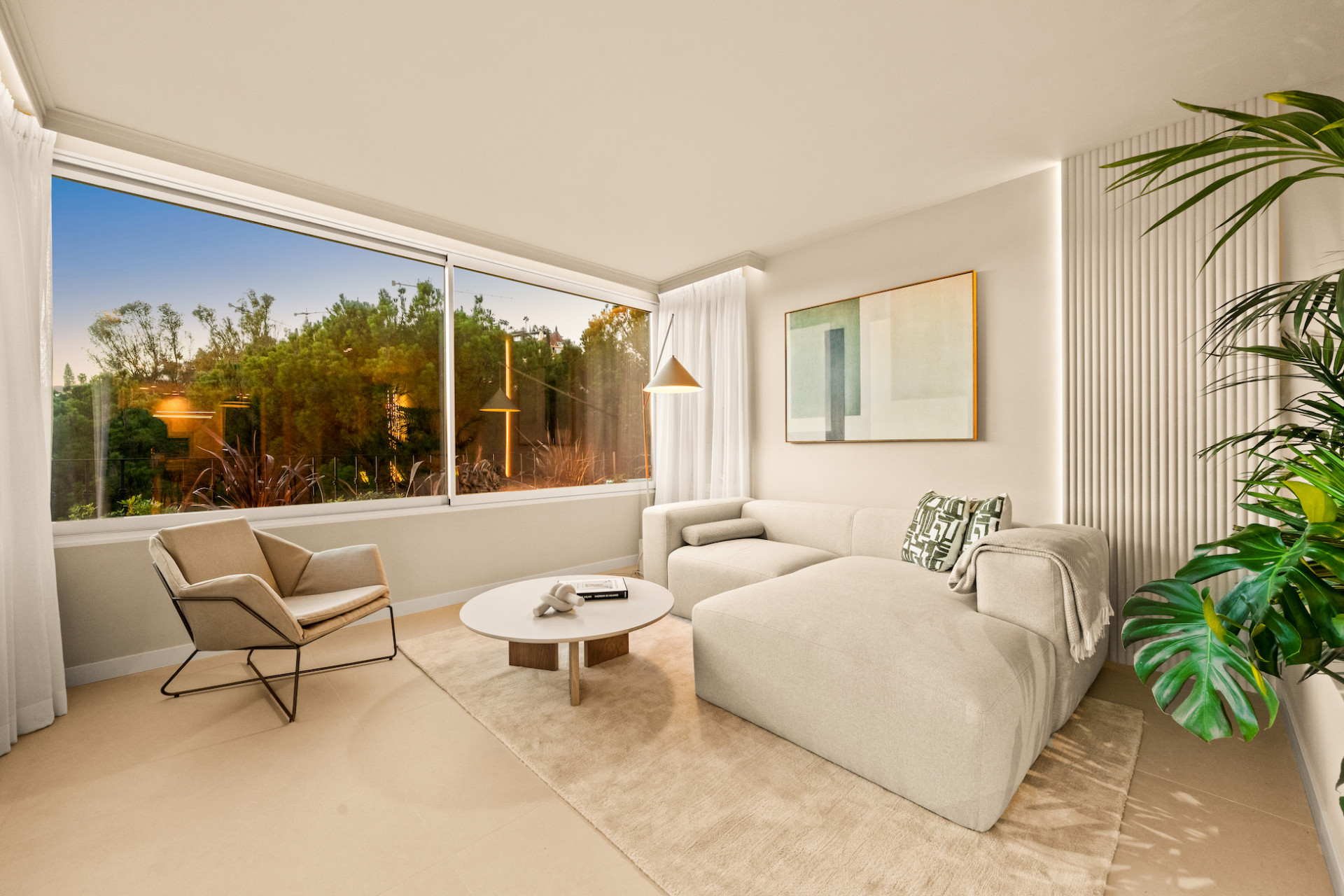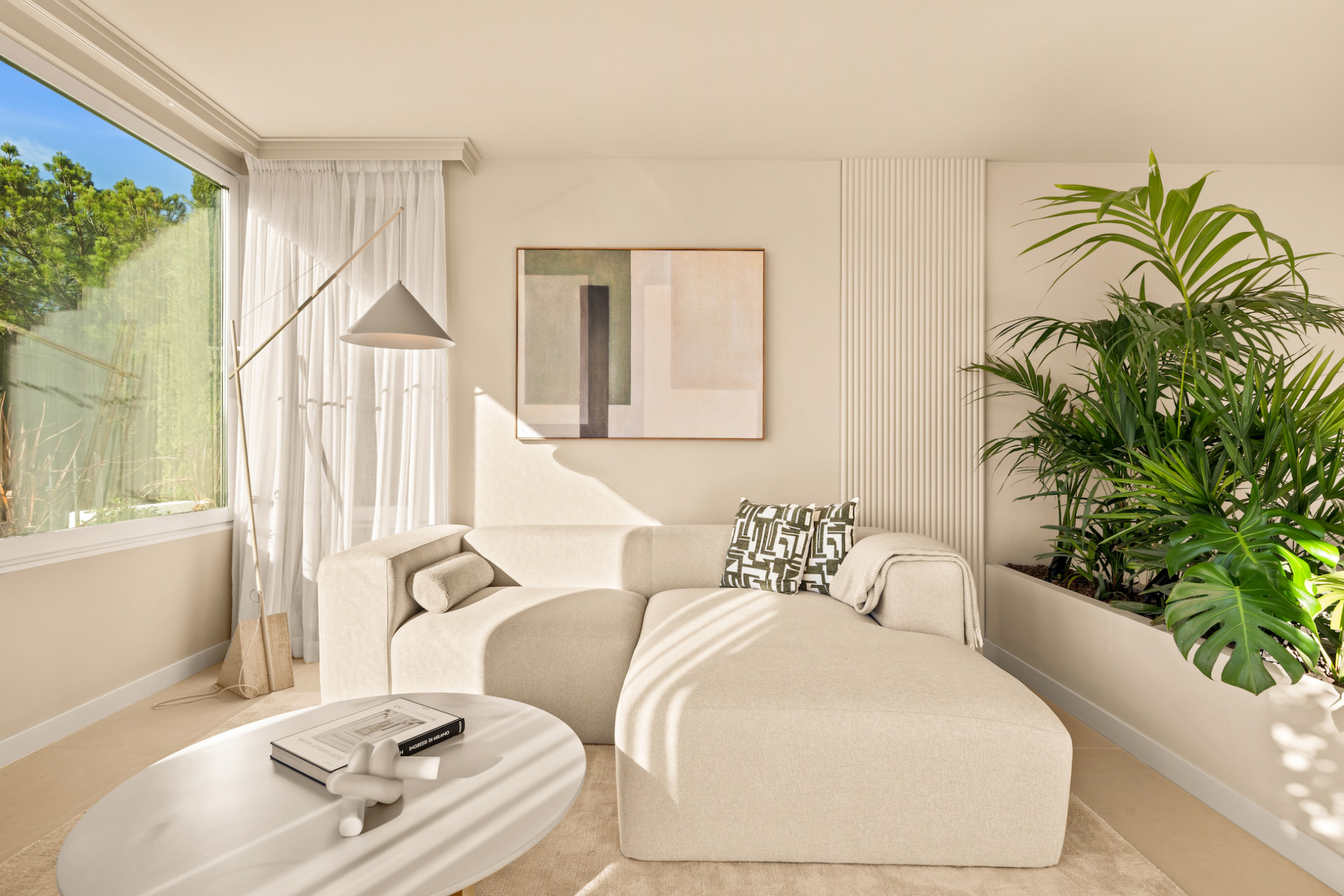 Bathed in natural light, the interiors feature a calming neutral palette, combining elegance with comfort. The spacious living areas flow seamlessly onto a private terrace, framing tranquil views of the golf course—a perfect setting for morning coffee, alfresco dining, or evening relaxation.