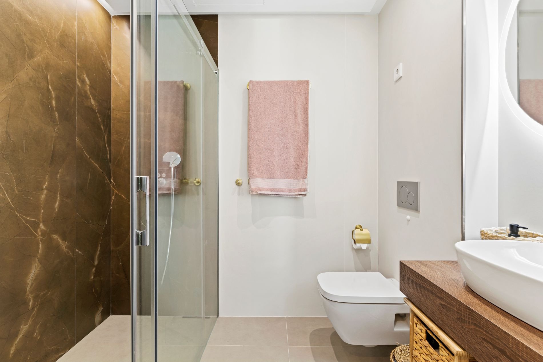 The residence forms part of a boutique gated complex of just 27 homes, offering a high level of privacy and security. Communal facilities include an outdoor swimming pool, a heated indoor pool, spa, sauna, and gym. The apartment also comes with a garage space, an additional parking place, and a storage room. A convenient shuttle service connects residents directly with the beach at Higuerón Resort.