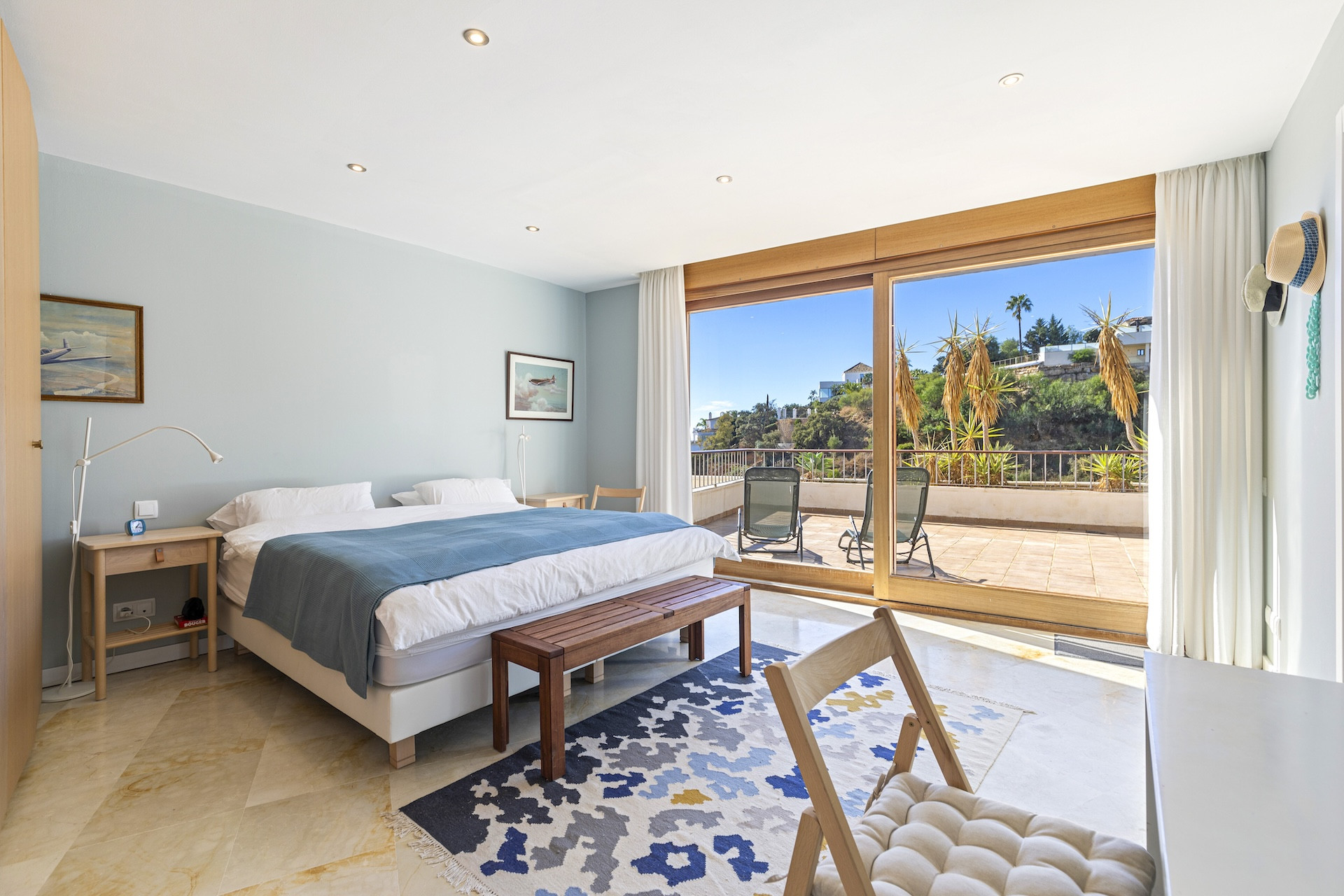Every room enjoys uninterrupted sea views, complemented by the lush green backdrop of the mountains. The master suite opens onto its own west-facing terrace, offering a private corner for sunset moments and quiet relaxation.
