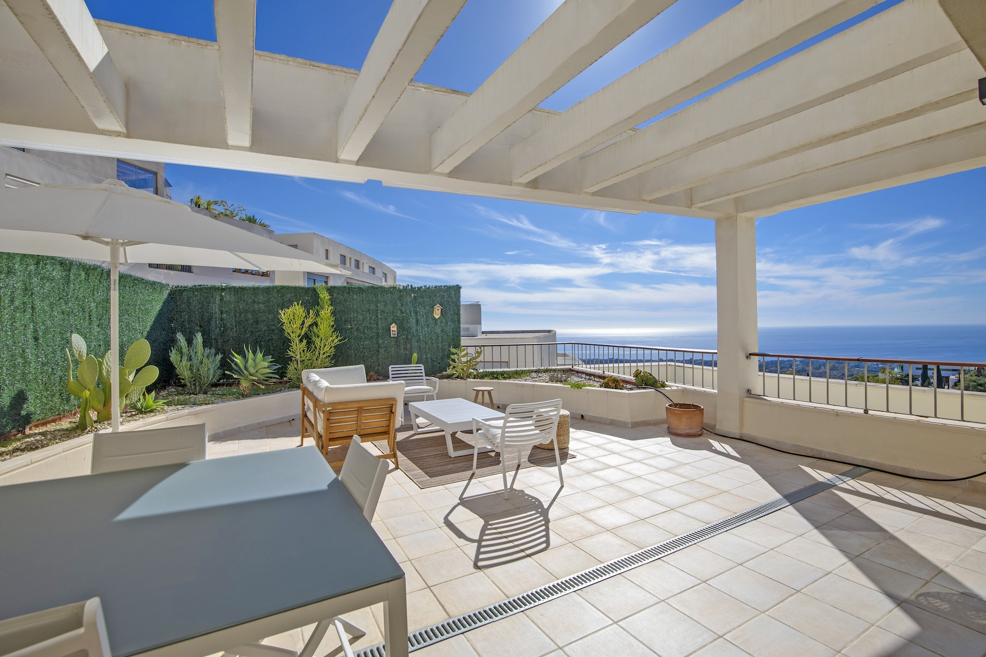 A horizon of endless blue welcomes you the moment you enter this remarkable penthouse, where the sea stretches out before you and the coastline unfolds beneath your feet.