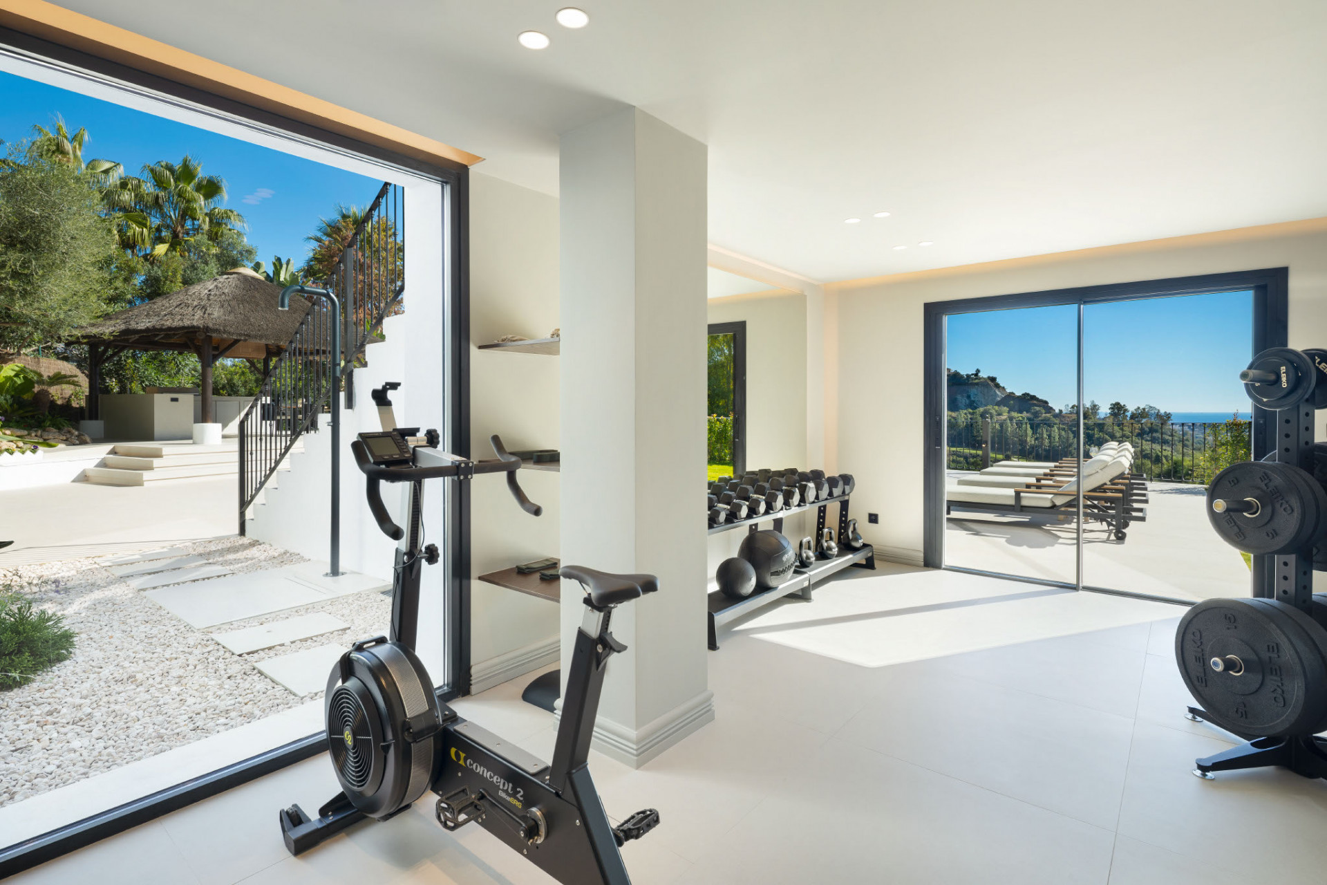 Luxury details define every corner, from bespoke carpentry and custom furnishings to high-end finishes throughout. The lower level elevates the lifestyle further with a private spa featuring an indoor plunge pool and sauna, a fully equipped gym with sea views, a custom wine bodega, and a unique entertainment room with built-in bar.