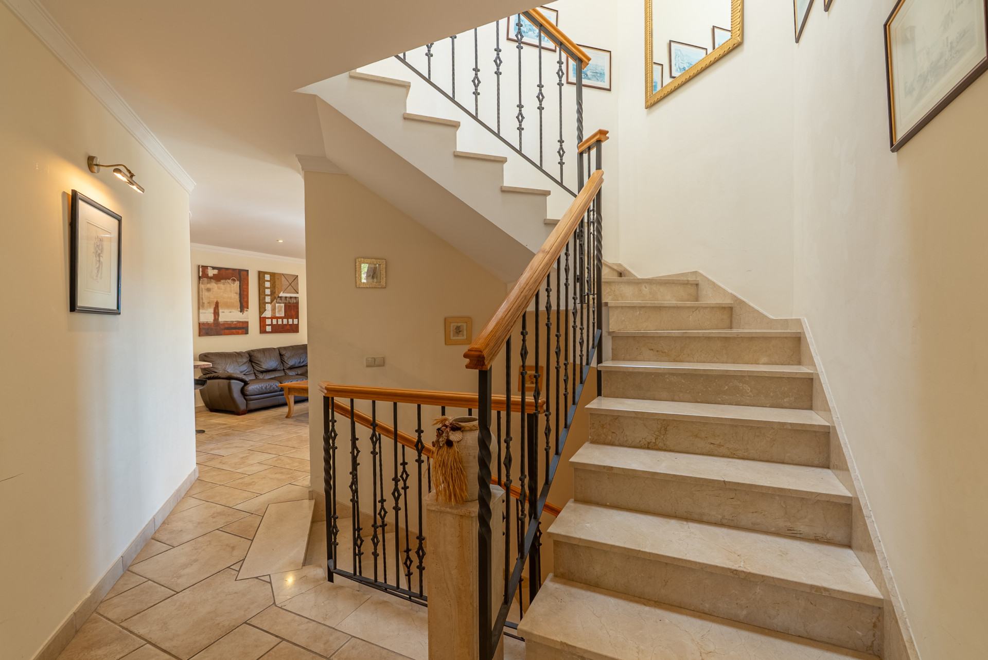 The 1,490 m² plot and solid structure allow for generous reconfiguration across 700+ m² of built space and multiple terraces. The home currently includes six bedrooms and flexible lower-level areas ready to be redesigned into wellness or leisure spaces that suit your lifestyle. Outside, a pool and garden sit ready to be elevated into contemporary Mediterranean living zones, where natural materials, landscaping, and design can merge into something warm and sophisticated.
