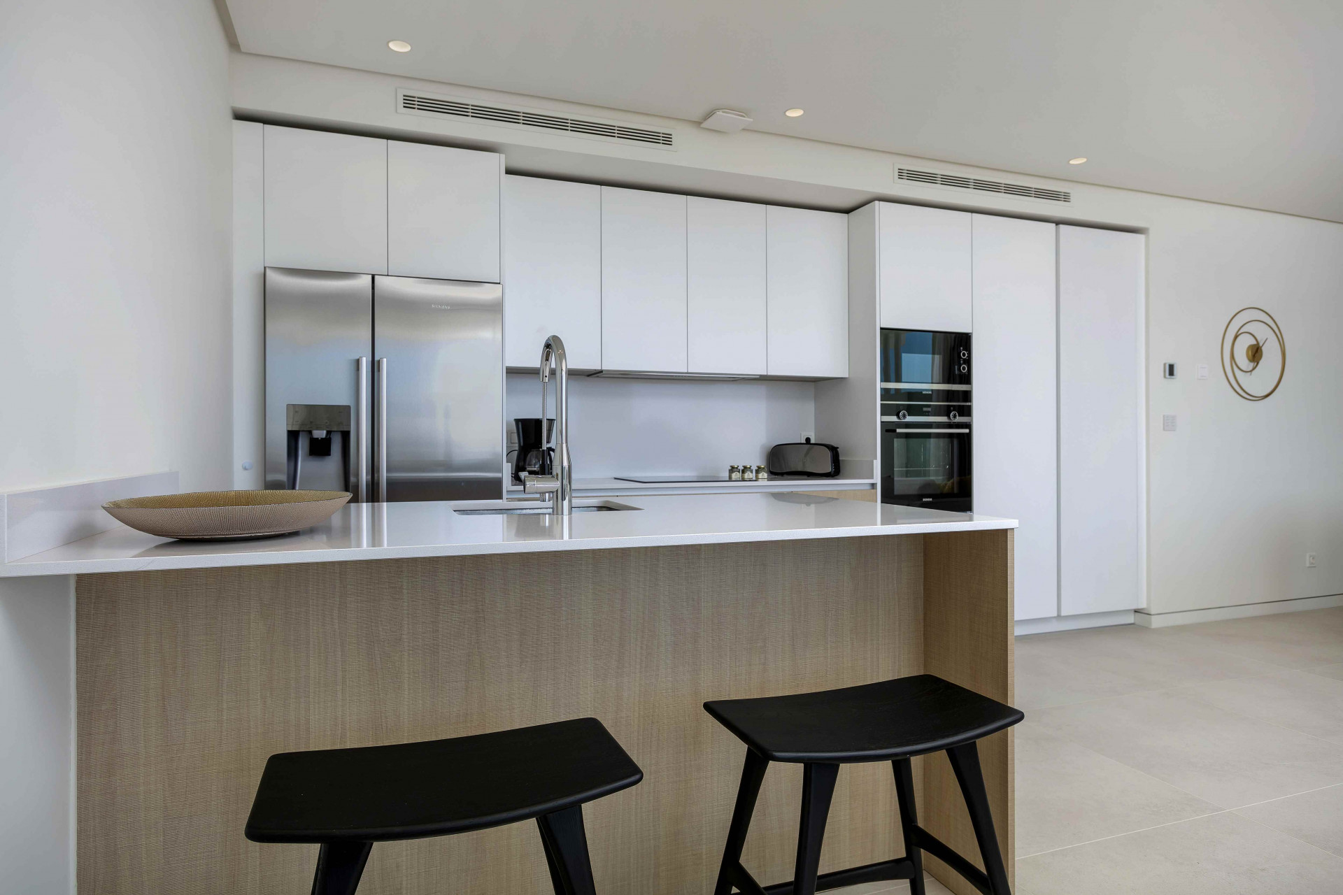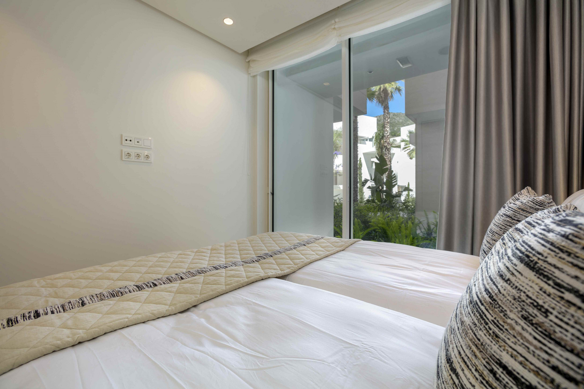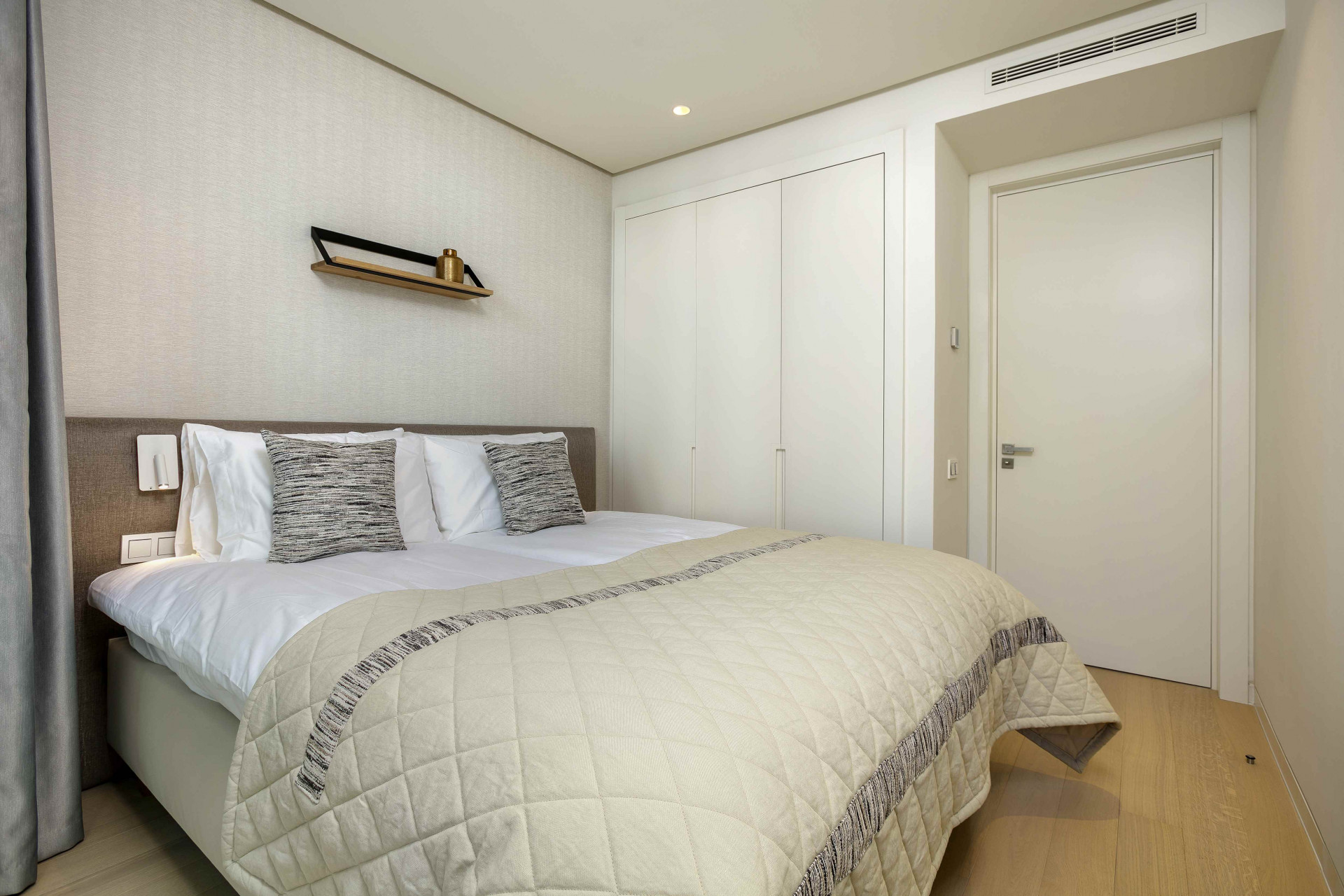 The apartment offers a beautifully designed master suite complete with a stylish en-suite bathroom, while the second bedroom is served by a separate, elegantly finished bathroom located just opposite. Both bathrooms are crafted to a high specification, featuring underfloor heating and spacious walk-in showers that provide comfort and a luxurious, spa-inspired atmosphere throughout the year.