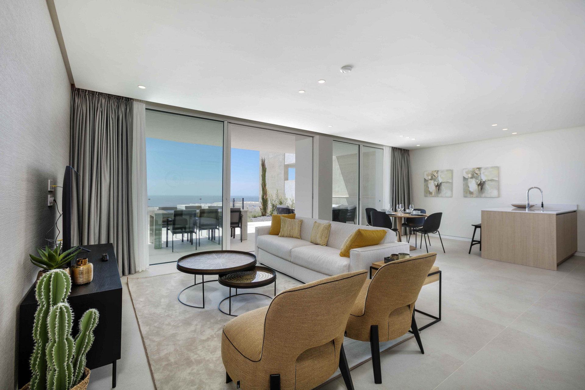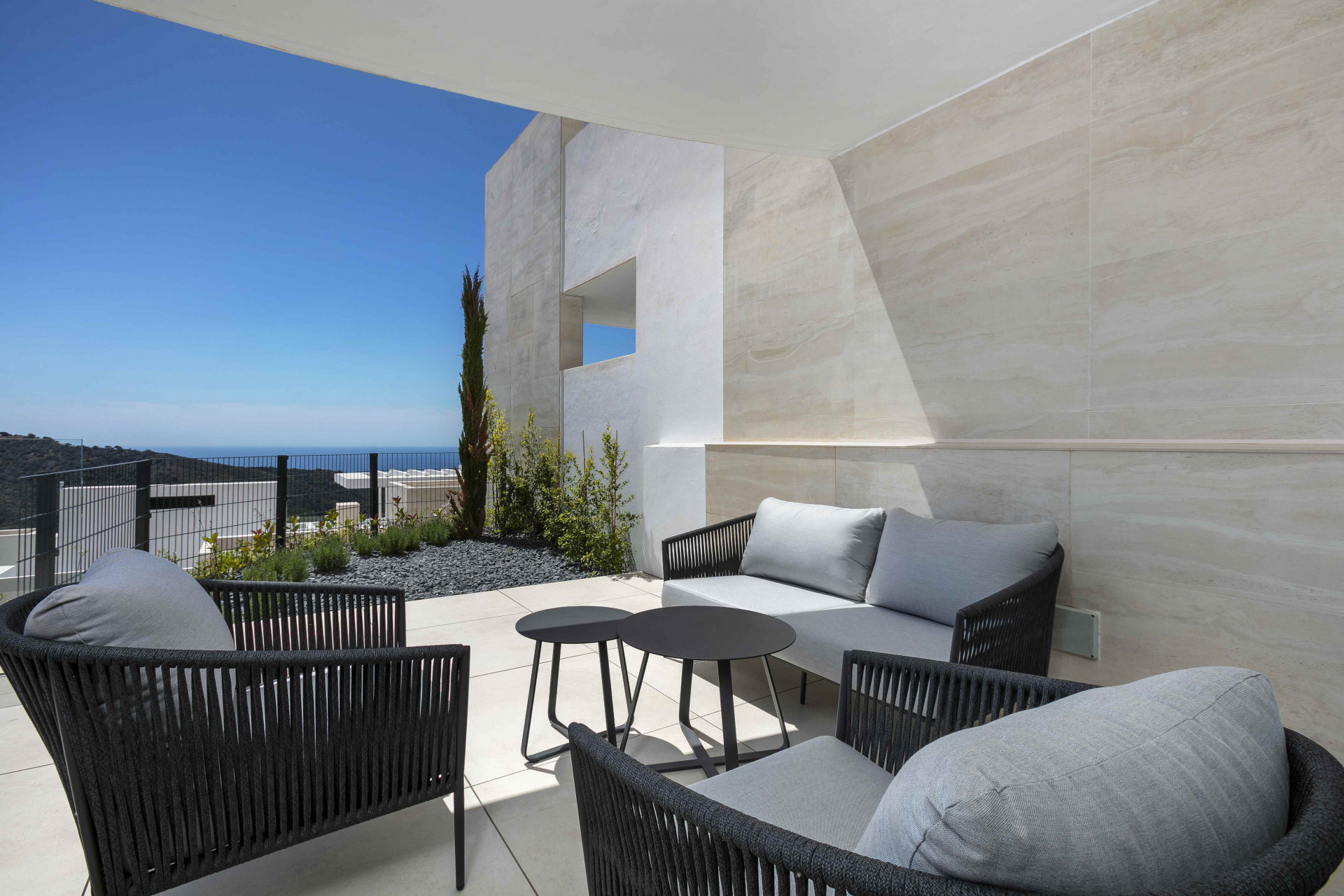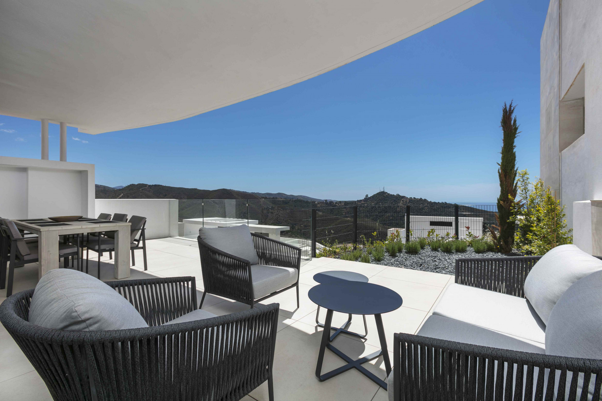 Experience sophisticated Mediterranean living in this outstanding two-bedroom, two-bathroom elevated ground floor apartment, set within the exclusive and fully gated community of Palo Alto in Ojén. Carefully designed to blend modern style with exceptional comfort, the home features a bright open-plan living and dining area that flows effortlessly onto a spacious private terrace. From here, stunning panoramic sea views create a peaceful and picturesque setting ideal for both relaxation and entertaining.