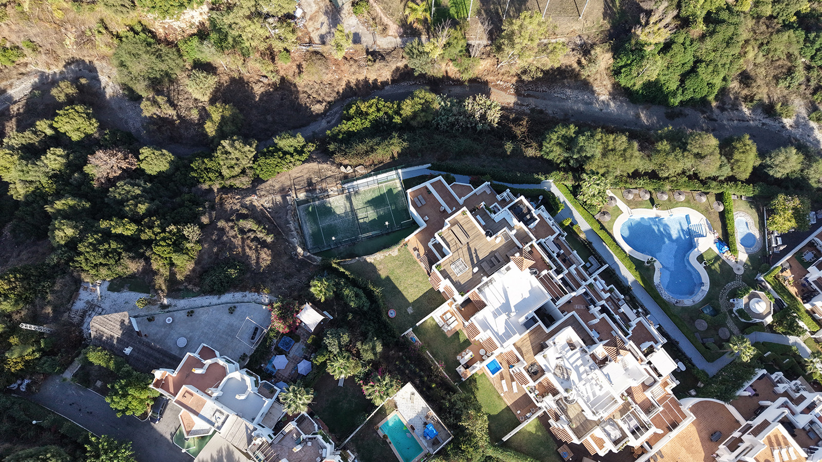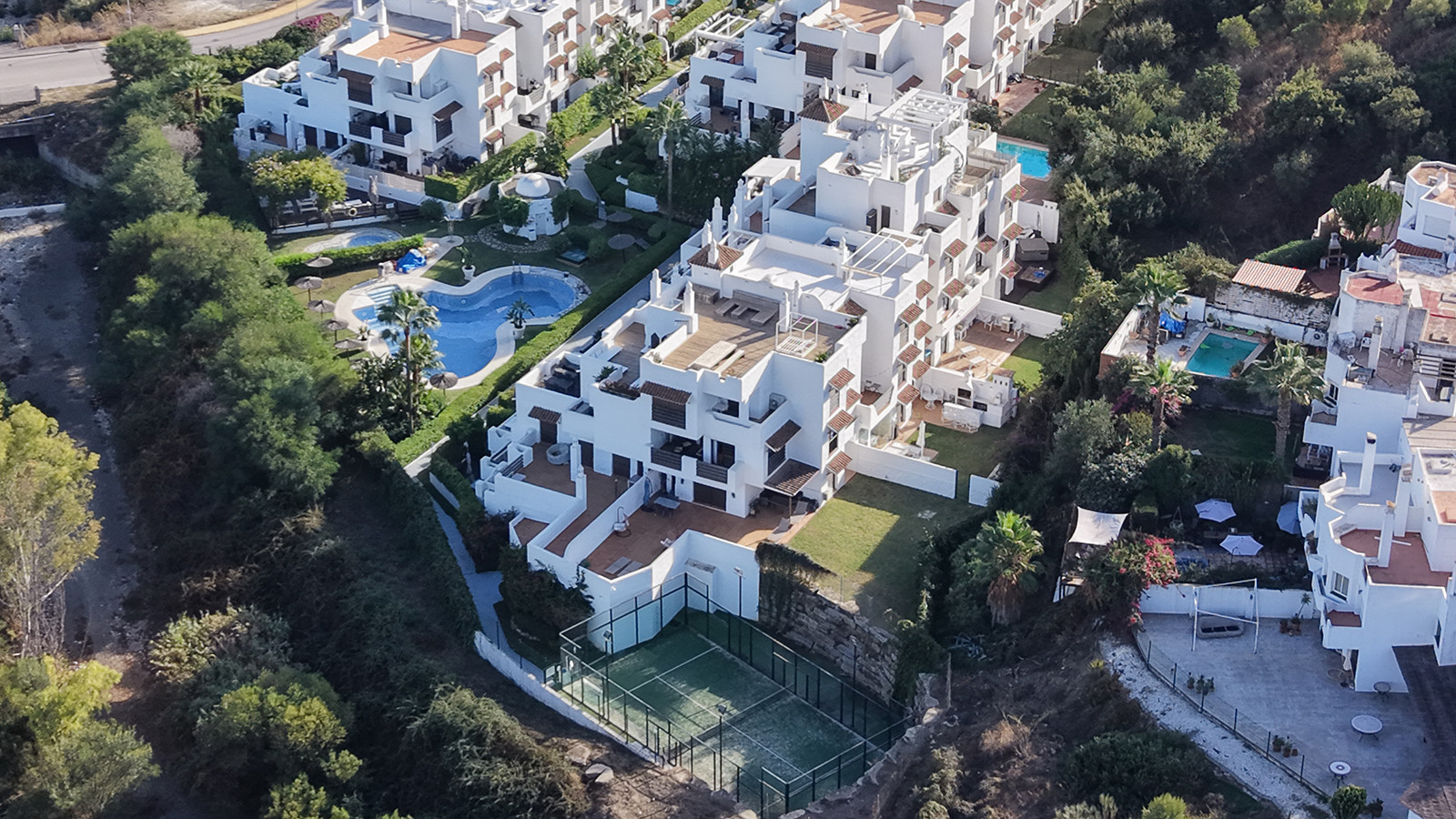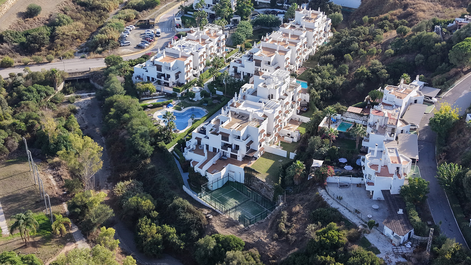 The urbanisation offers excellent amenities, including a large communal swimming pool, padel court, beautifully kept gardens, and secure underground parking for residents.