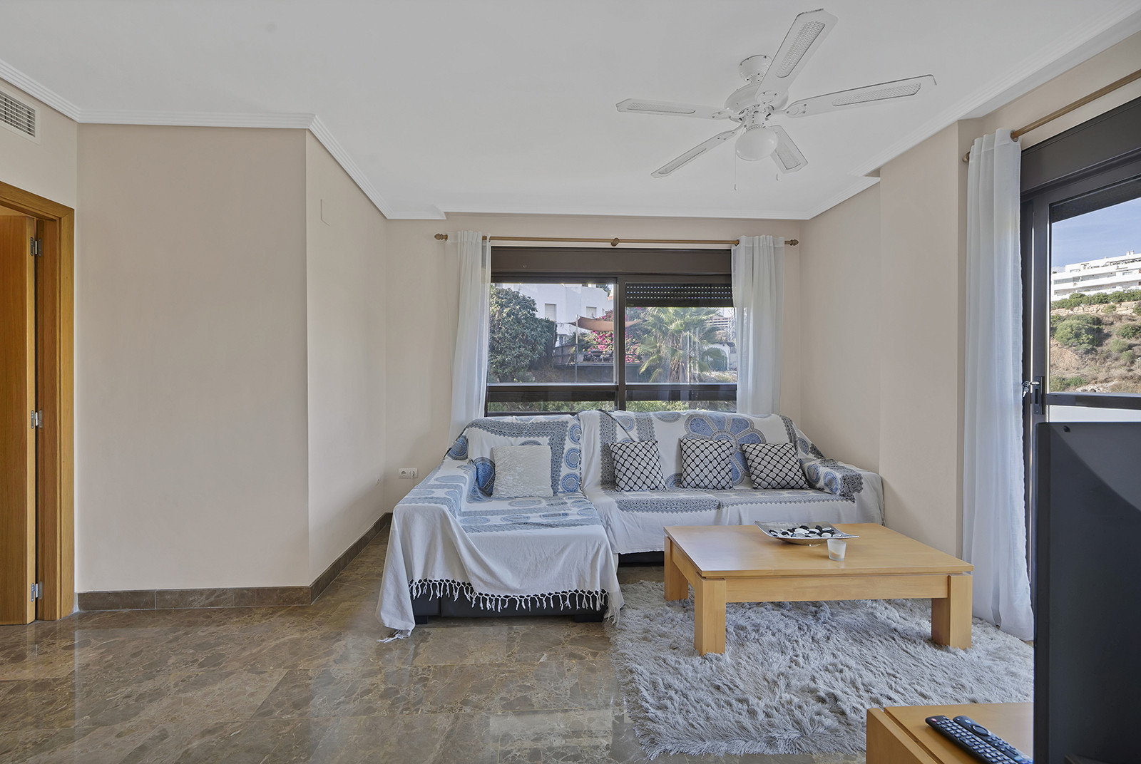 This well-presented two-bedroom, two-bathroom apartment is situated in the popular Golf Hills community in Selwo. It features a bright and comfortable living area, a fully fitted kitchen with a separate utility space, and a private terrace perfect for relaxing or enjoying meals outdoors with views over the landscaped surroundings.